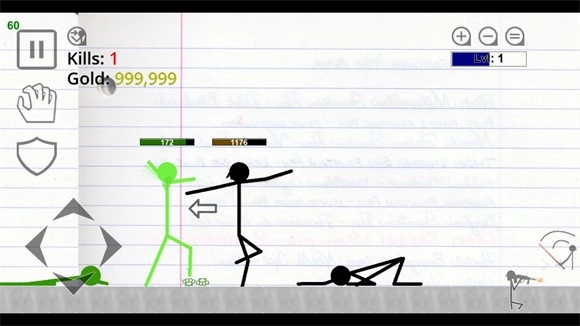4、正式开始后,通过操控左边来控制角色移动,只需在屏幕上移动手指,就能操控火柴人的双手展开攻击。
