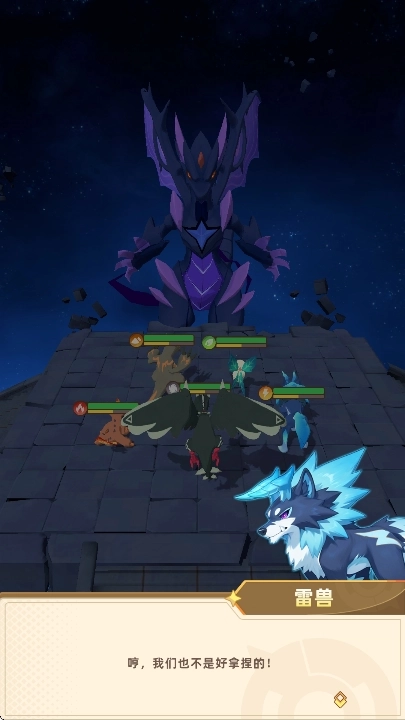 4、玩家要依据敌人的属性来搭配宠物阵容,就像“水系克制火系”这样,借助技能组合以及对时机的精准把控从而获得胜利。