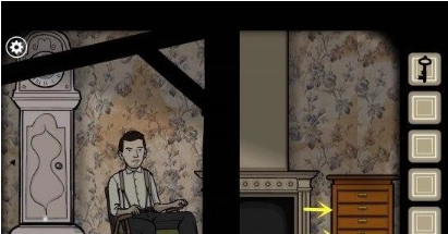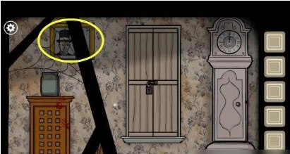 5、按照提示打开左边的柜子,你会看见怀表,怀表里面时针所指数字为8,分针所指数字为5 。