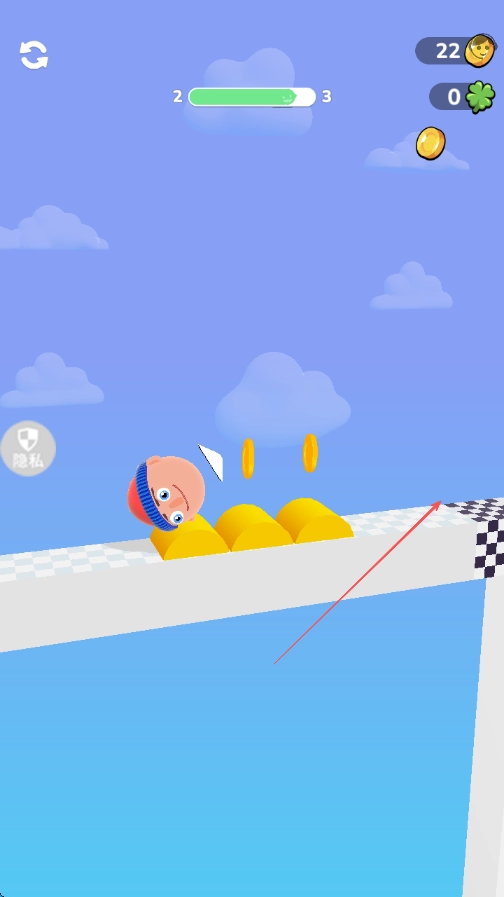 3、当碰到凸起的黄色障碍物时,要小心通过,同时在关卡内持续收集金币。