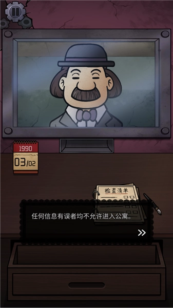 2. 如图所示进入游戏后,玩家需要依据邻居所出示的证件信息,从中识别出伪人。