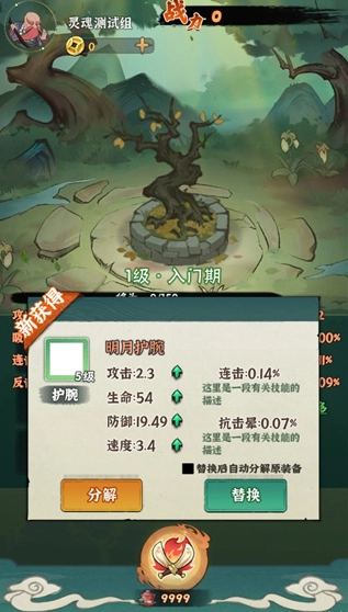 5、低品质的装备能够分解为灵石,而灵石可用来提升仙树的等级,如此便能提高获取高品质装备的几率。