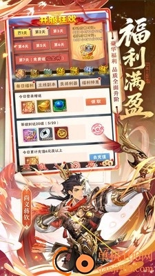 4、每日单充福利:传奇武将陪少年勇闯三国,单笔充值达到指定金额,即可领取豪华魂金、昊金武将宝箱!