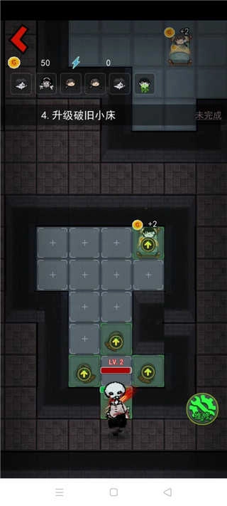 玩家进入游戏后,别急着花金币,先升级自己的小床,接着再升级门。为更稳妥,大家可花8金币买个扫把炮台,1级猛鬼没那么厉害,无需升级,继续升级其他设施就好。