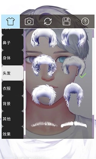 5、头发选项,可选择各种帅气的不同发型。