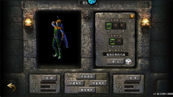 1. 第一步,选择职业、姓名以及性别后进入游戏。