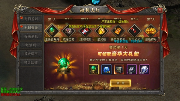 4、每天登录就能领取豪华大礼包,登录天数累计得越多,收获的奖励就越丰厚!