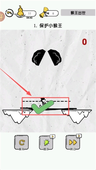 3、留意小猴站在绿色对勾所处的安全位置,确定保护任务已然完成,着手准备开展下一步关卡的相关操作。
