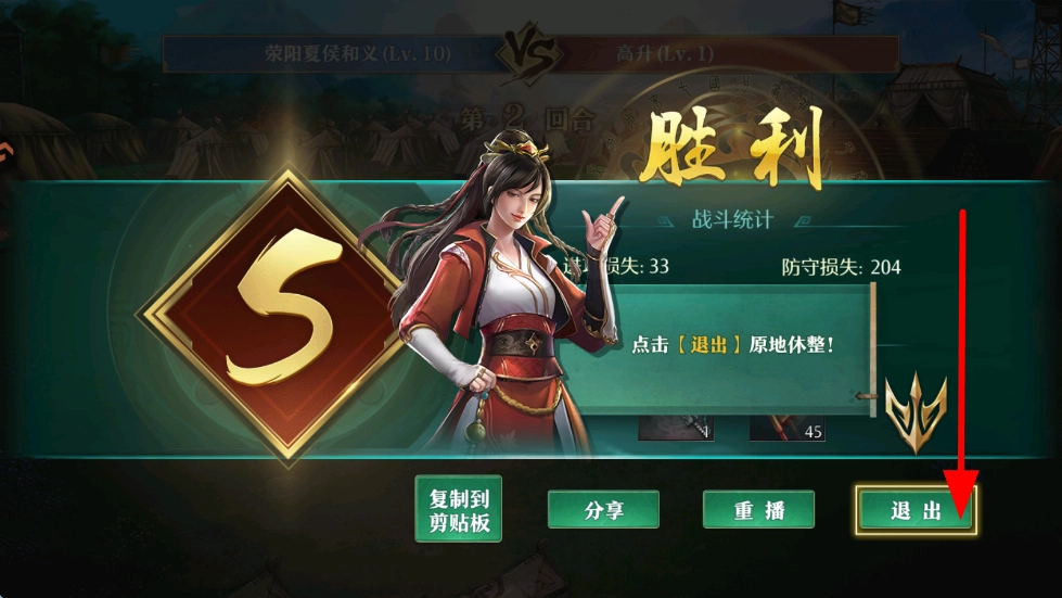 4、当战斗结束,会展示战斗结果。要是取得胜利,能够查看战斗统计,从而知晓损失等相关情况,随后点击退出,便结束此次战斗。