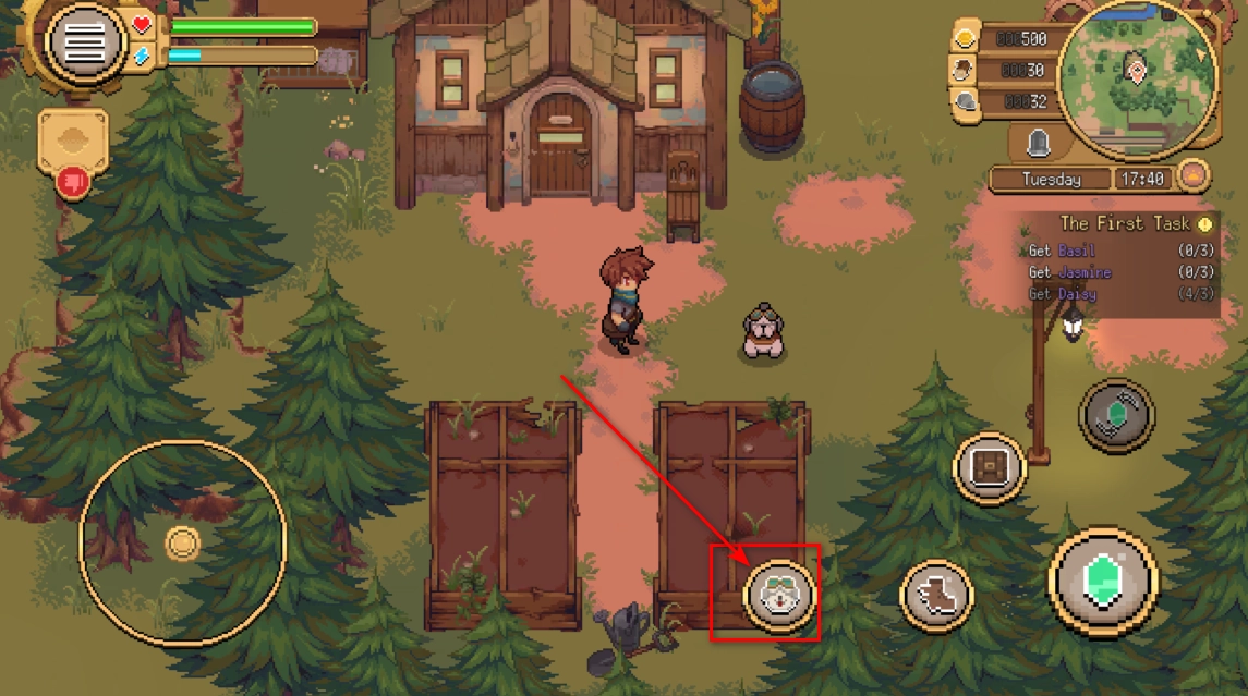 2. 接着我们慢慢靠近狗狗,直至下方方框内图标显现,随后点击该图标。