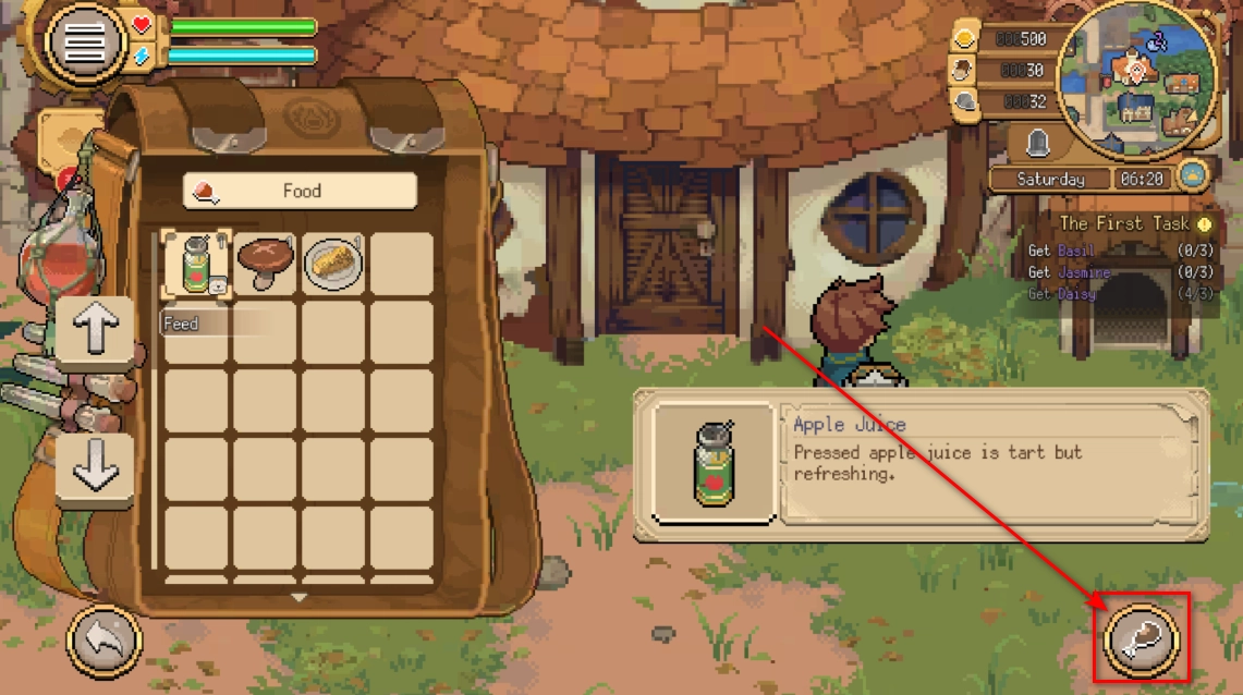 5. 挑选好食物后,点击右下角的鸡腿图标。