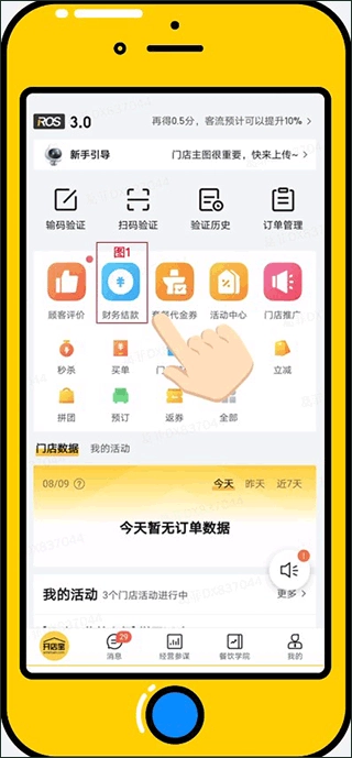 1、进入美团开店宝主页后点击主页上的财务结款。