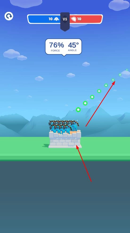 1. 对弓箭的力度与角度加以调整,对准敌方城堡以及士兵展开射击,凭借精准的打击能够有效地削减敌方力量。