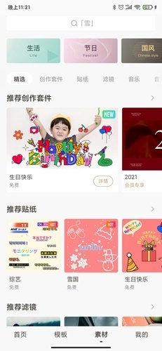 接下来便是【模板】部分,这里既包含软件方提供的视频制作模板,也有其他用户分享的模板。借助这些模板,我们能轻松完成视频制作。