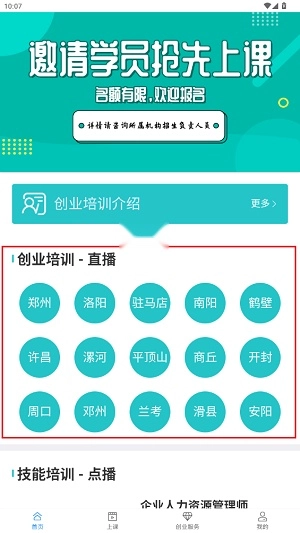 目前已上线培训、就业、创业三大主要栏目。