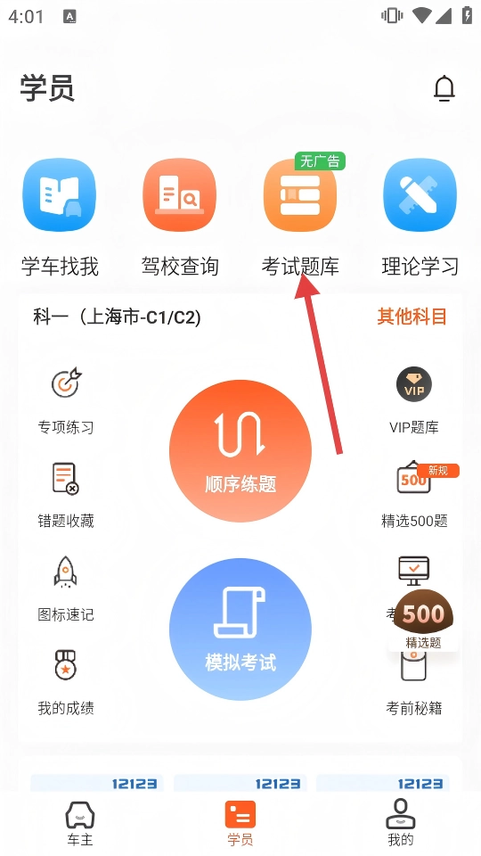 2、题库系统升级:打造高度还原的模拟考试环境,提供VIP题库资源,强化科目一和科目四智能组卷的训练效果,帮助学员高效突破理论考试难题。