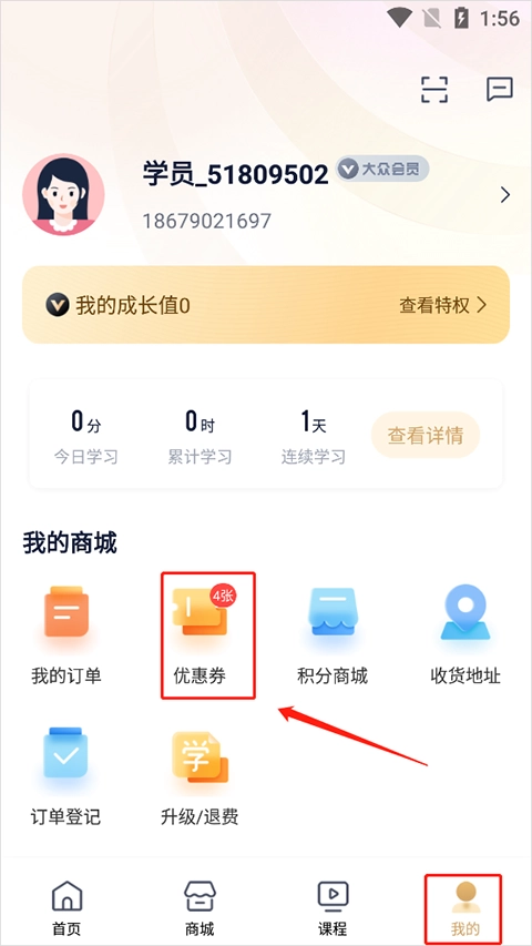 1、在该页面选择“优惠券”。