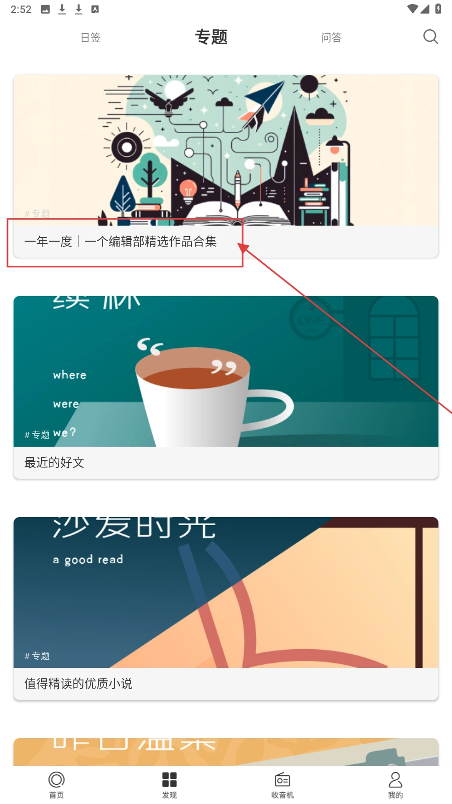 2. 在发现页面,浏览【专题】相关内容,挑选感兴趣的专题进入其详情页面。