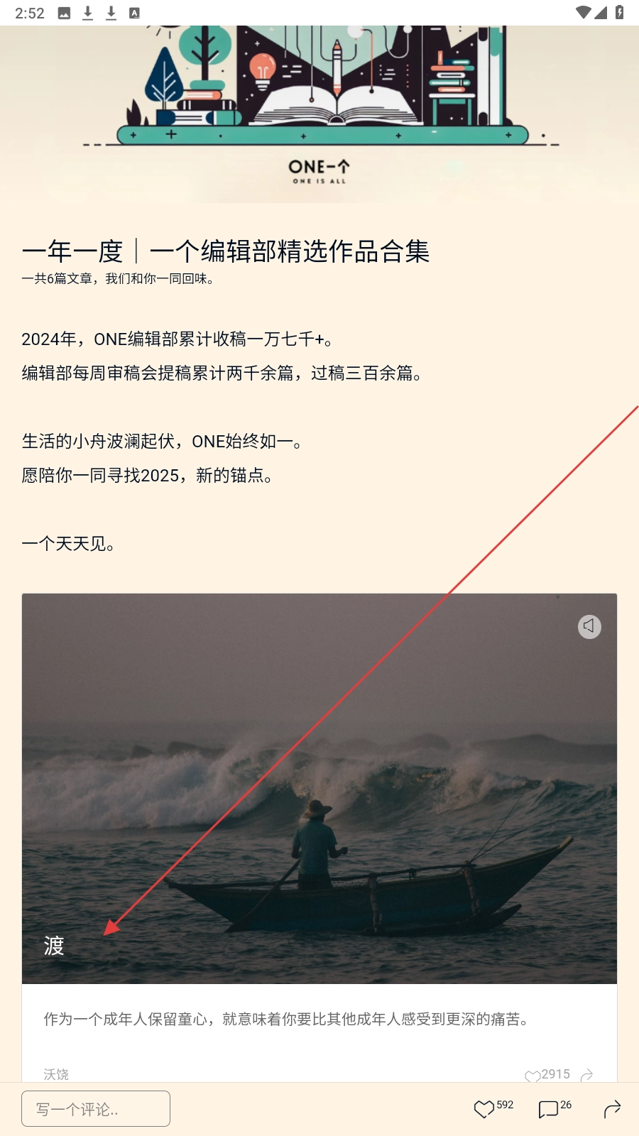 3、于专题详情页面,挑选感兴趣的文章,例如【渡】,随后进入文章详情页。