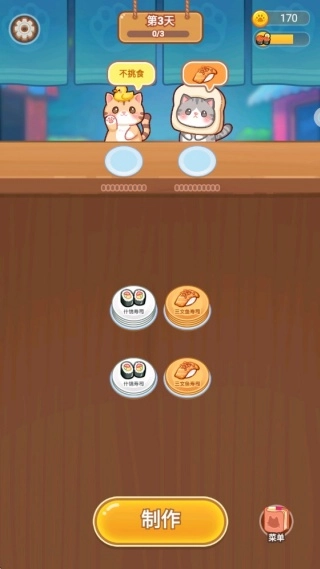 1. 玩家需依据客人的订单,消除美食病后将美食提供给客人。