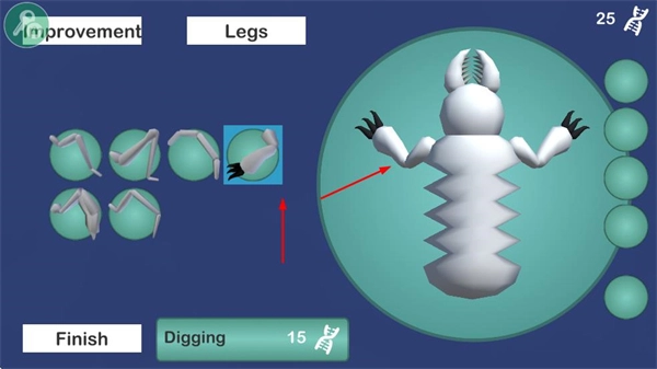 1. 通过消耗DNA资源来升级生物部件,以此增强生物在移动、战斗等方面的能力,为生物进化打下基础。