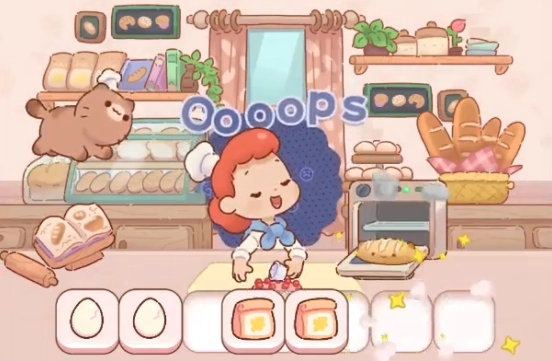 核心玩法为:借助三消的方式,消除面粉、酵母等食材方块,从而制作出法棍、可颂等面包。