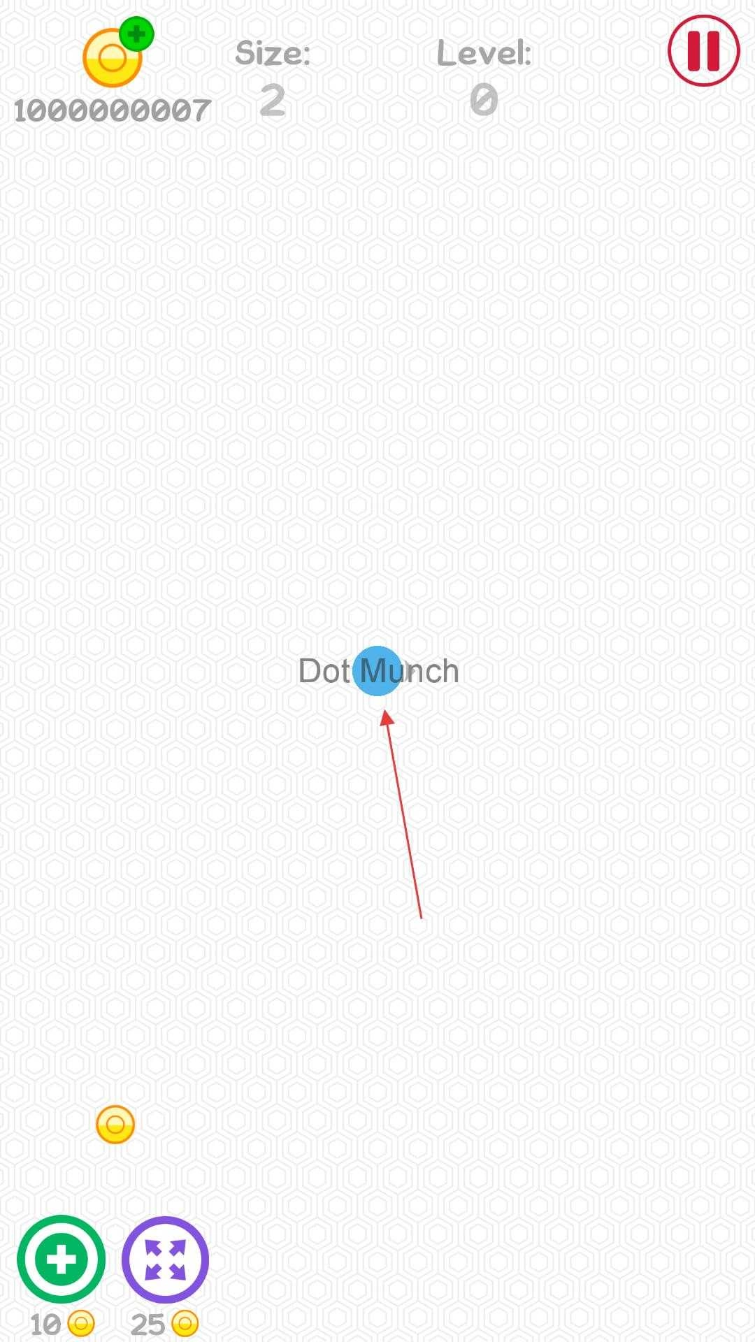 3、踏入经典模式的游戏界面,对蓝色的点点进行操控,使其在布满六边形纹理的画面里移动并吞噬其他小圆点,界面上方会展示尺寸、等级等相关信息。