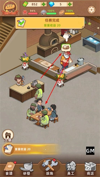 2. 店员着手制作面包,客人来到店铺进行消费,由此达成营收收益任务,进而推动店铺的经营进程。