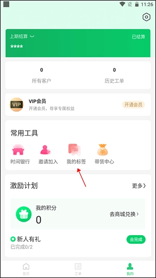 2、有个常用工具,选择第三个的功能“我的标签”。