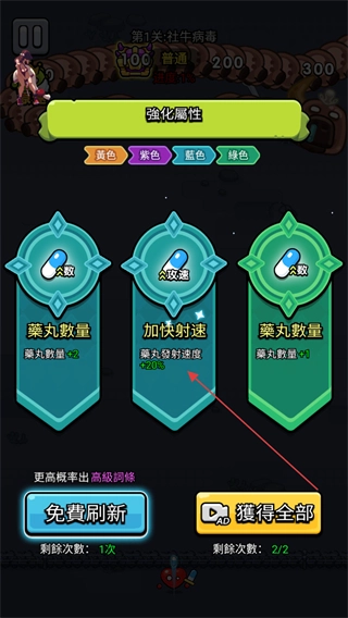 4、战斗结束后能够强化属性,例如选择加快射速这类强化选项,以此提升药丸的发射速度与数量等,增强自身战斗力,从而可以挑战难度更高的关卡。