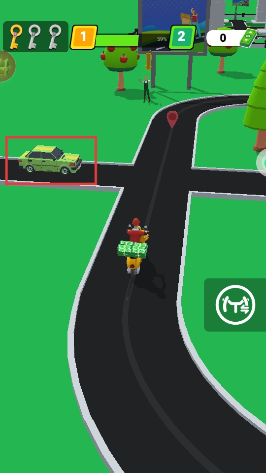 3、当在路上碰到诸如【汽车】之类的障碍物时,要灵活地操控角色进行躲避,以保证外卖能够安全且迅速地送达。