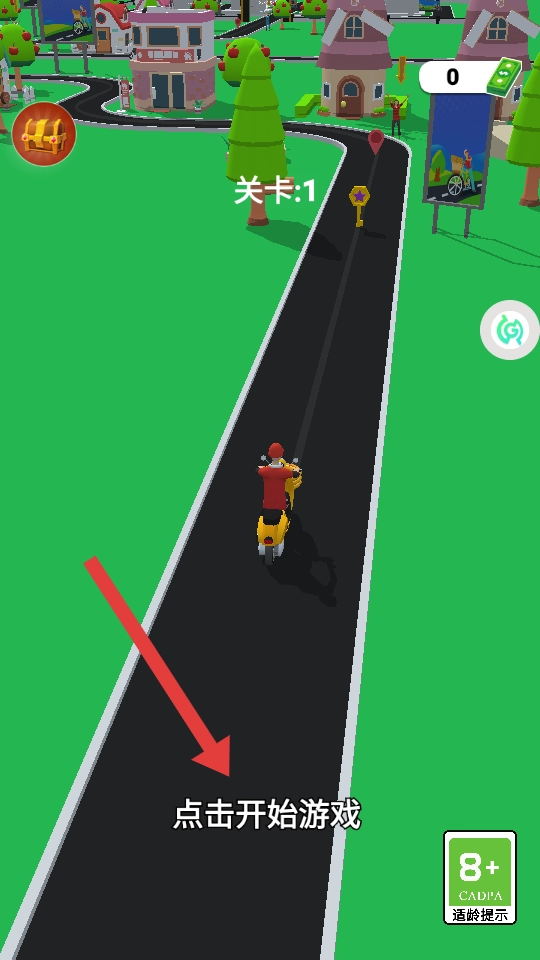 1. 来到游戏界面,点击【点击开始游戏】按键,开启【关卡 - 1】的外卖配送旅程。