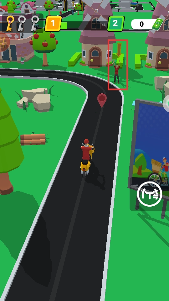 2. 长按屏幕操控角色行进,当碰到红框里的【人物】时,迅速靠近并把外卖送到顾客手中,以此获取报酬。