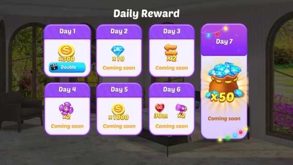 1玩家登录进入游戏后,能够参与签到任务来领取金币,并且在第7天签到时,还可领取到50倍的钻石奖励。