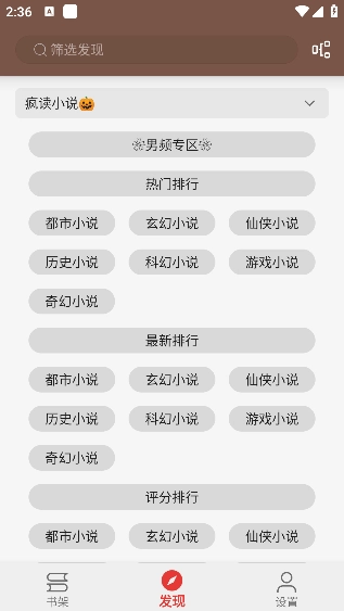 书源更新成功后点击底部的发现可以看到许多的书源