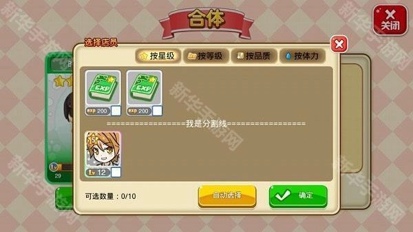 通过合并低品质、低级别的店员以及经验卡,使用合体选项能够快速提升店员等级,并且还有一定几率提高店员的品质与星级。