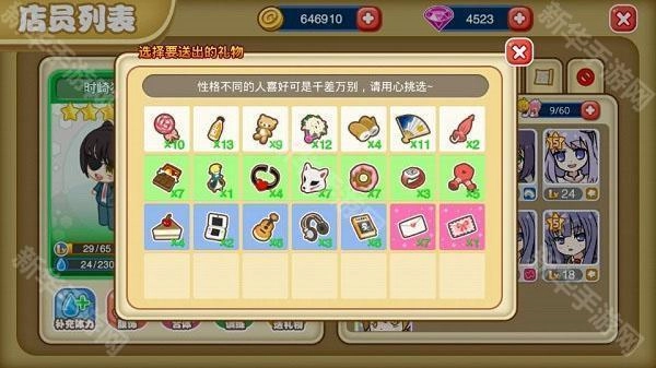 选择赠送礼物,能够提升与店员之间的好感度。店员心情愉悦,便能为餐厅创造更多的财富。礼物获取途径多样,既可以在神秘商人处购买,也能够通过外出宣传,或者完成任务来得到。