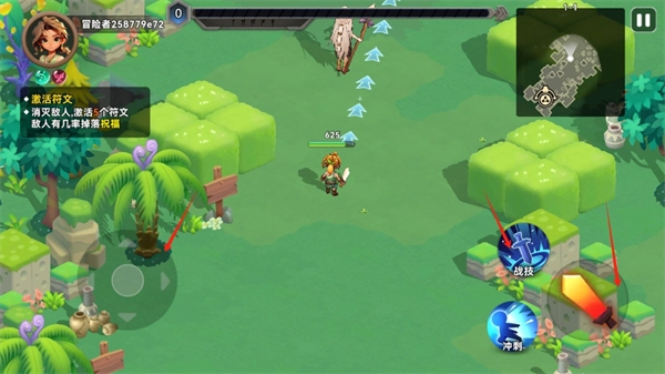 3、把左边的轮盘滑动至敌人身旁,点击右边的攻击按钮与技能,直接行动就好。