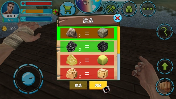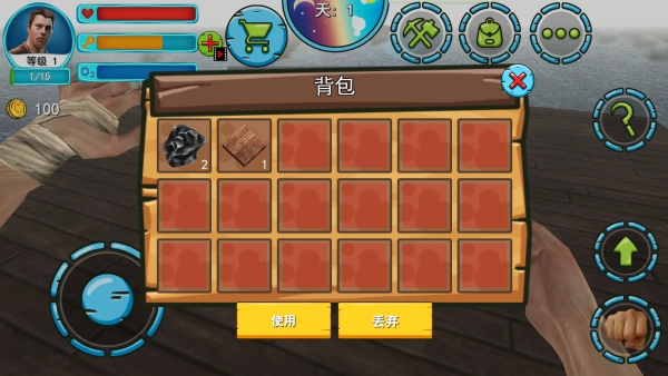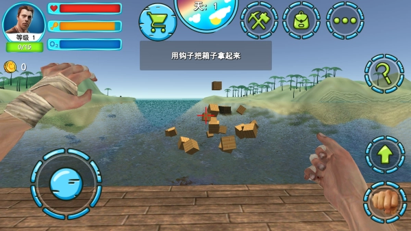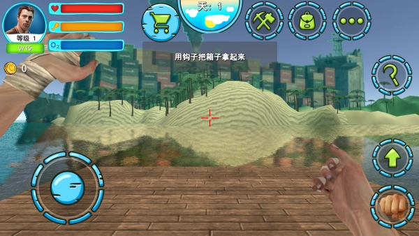 1. 踏入海岛世界,自第一天起,第一步是探索地图并收集资源,借助钩子拿起箱子。