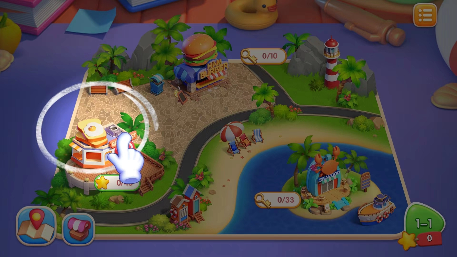 2. 依照系统的指引,我们点击第一个场景中的西式早餐厅。