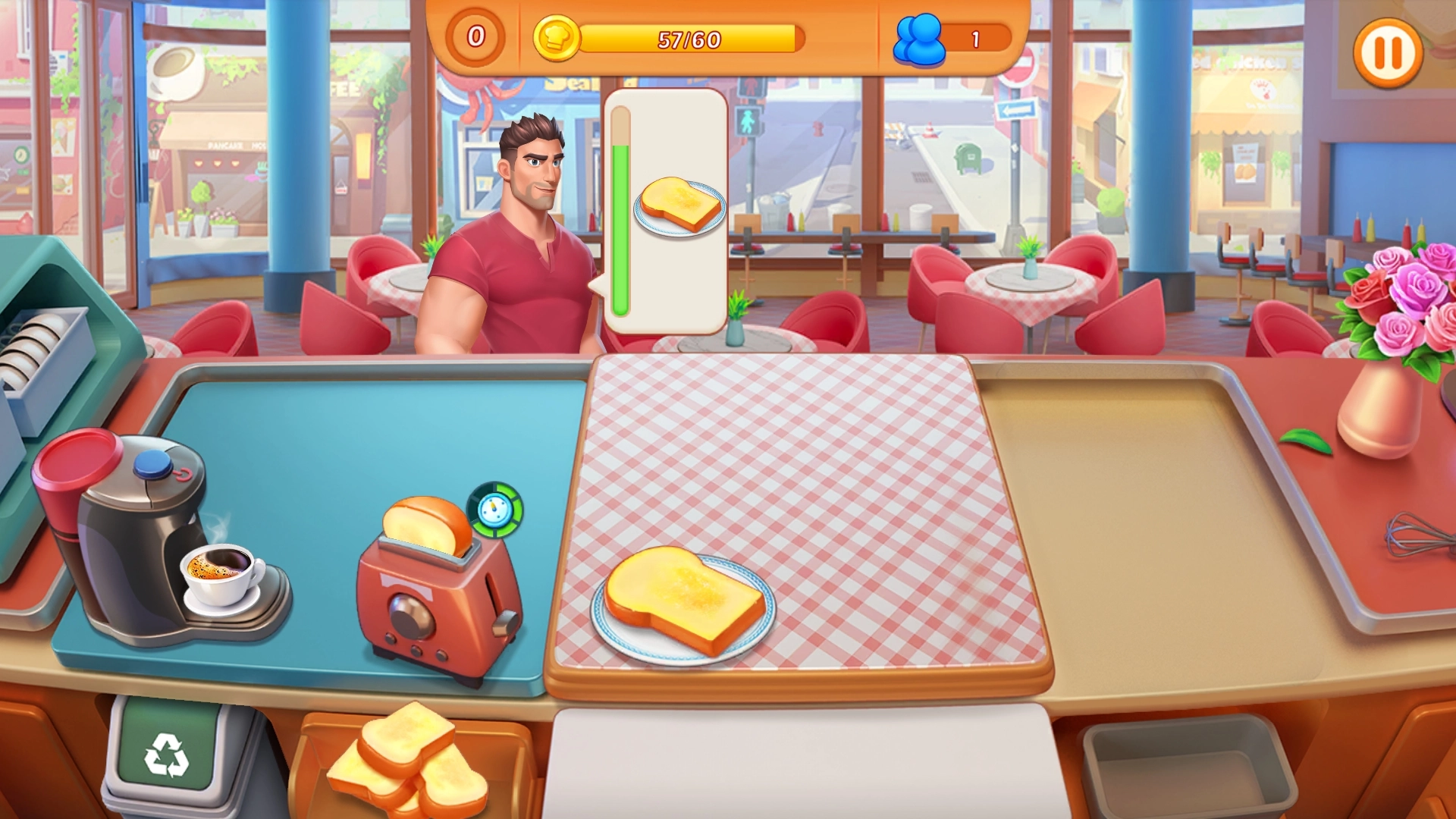 1. 轻点即可快速匹配顾客订单,利用防糊锅、加速烹饪等道具提高效率。自动上菜功能助你更专注于餐厅的整体运营。