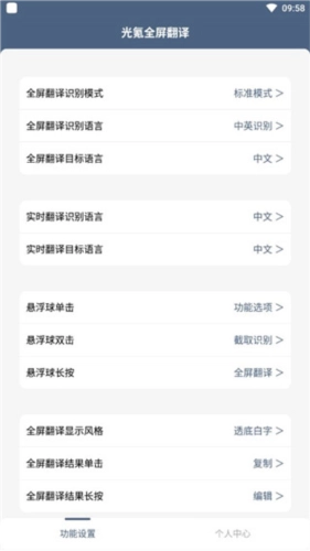 3、翻译功能与语言选择,均可依据个人常用需求进行设置。