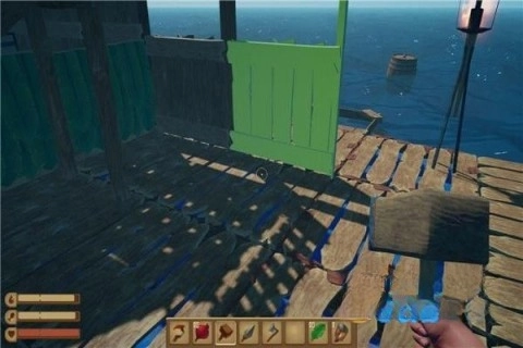 建造锤用途为拓展木筏,以增加空间。其合成材料为:5块木板、2块废铁。