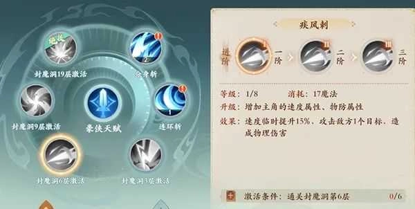 4技能为疾风刺,造成单体1次伤害,同时速度临时提升15% 。该技能在2阶时,目标不会触发保护;3阶时,技能伤害结果额外增加10% 。