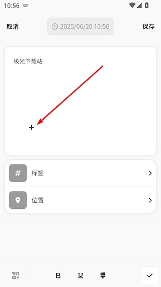 1、打开时刻日记,点击底部输入框内左边的按钮