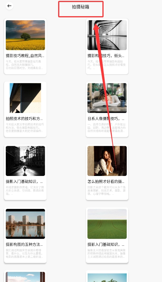 2、内部配备系统的摄影教程,从构图技巧开始,循序渐进地讲解到后期修图,适合期望提升拍照水平的用户。