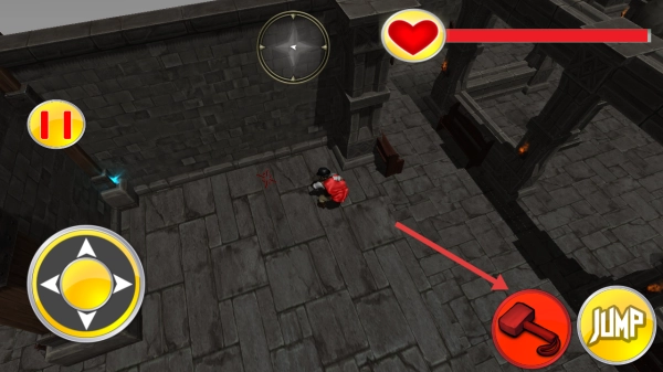 3、在游戏场景中,通过摇杆来控制角色移动。当遇到敌人时,点击右侧的锤子图标进行攻击,以此推进关卡,完成挑战流程。
