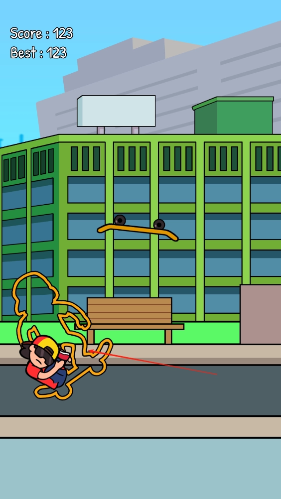 2、技巧与分数紧密关联:玩家翻越障碍时动作越是流畅,完成的难度越高,所获得的分数也就越多。这种设定激励着玩家持续练习技巧,逐步从“新手”成长为真正的“滑板行家”。