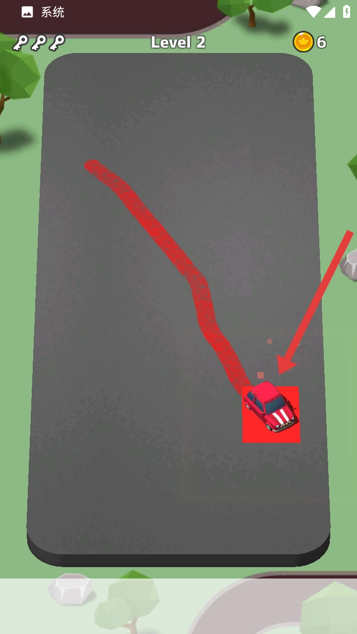 2、操控红色小车顺着路径驶向终点,待车辆完整驶入红色方框所标识的停车位区域时,Level2关卡即宣告完成。