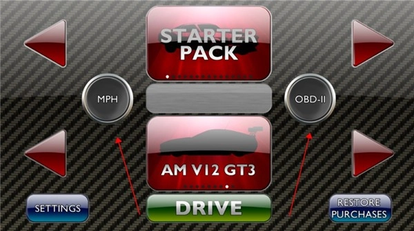 1、进入游戏后,通过屏幕两侧的按钮切换车辆选择。